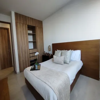 Tu nuevo hogar te espera en este departamento de 92 m2, con 2 recámaras y 2 baños. Disfruta de acabados que combinan funcionalidad y estilo, como la cocina integral con cubierta de granito y gabinetes de madera, y los baños con detalles con canceles de cristal templado.