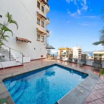 Ubicado en las colinas sobre la Zona Romántica, este encantador condo en Bugambilias Vallarta ofrece vistas amplias al océano, la ciudad y la vegetación que rodea la bahía.