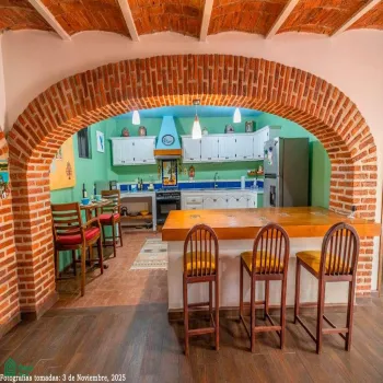 Los detalles arquitectónicos incluyen arcos de ladrillo, techos de bóveda y azulejos de Talavera pintados a mano.