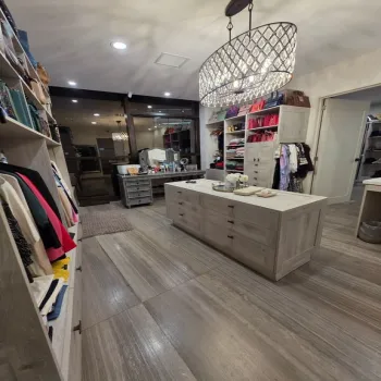 cocina de diseñador con isla, amplia alacena y electrodomésticos Wolf & Sub-Zero,