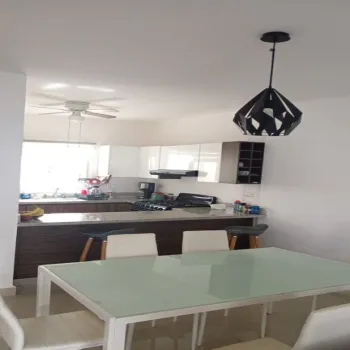 cocina integral equipada con estufa, microondas y refrigerador, jardín, cochera para dos autos, 4 aires acondicionados.