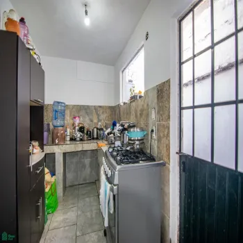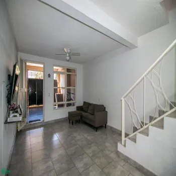 Cuenta con garaje, dos recámaras (en el segundo piso), sala, cocina y dos baños y medio.